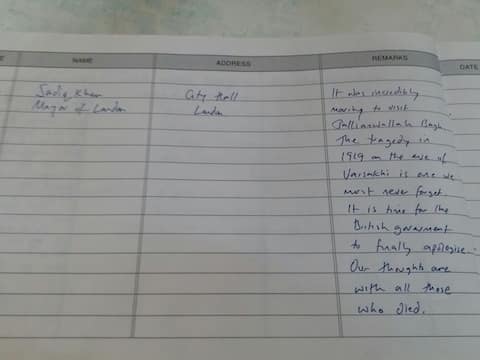 Khan wrote in the visitor's book at the Jallianwala Bagh that the British Government must apologise for the tragedy that took place at Jallianwala Bagh in 1919.
