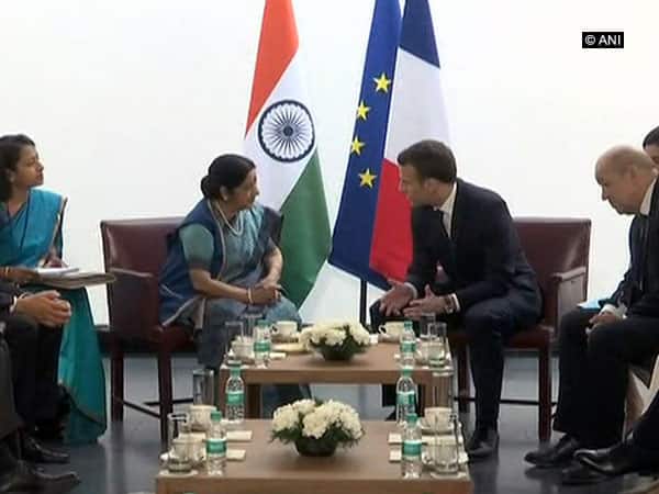 New Delhi [India], Mar 10 (ANI): French President Emmanuel Macron met External Affairs Minister (EAM) Sushma Swaraj here on Saturday, to discuss on further enhancement of ties in various sectors between India and France.