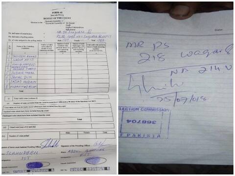 "This is the mockery of rules by Election Commission itself. Rules dictate that ECP officials are bound to provide results on Form 45, instead almost ALL of them in Khi and Hyderabad are insisting on giving us results on plain paper like this," he noted.